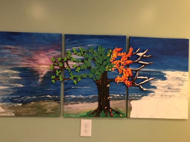 Multimedia art called Tree of Seasons painted after thinking about it for a couple of years.